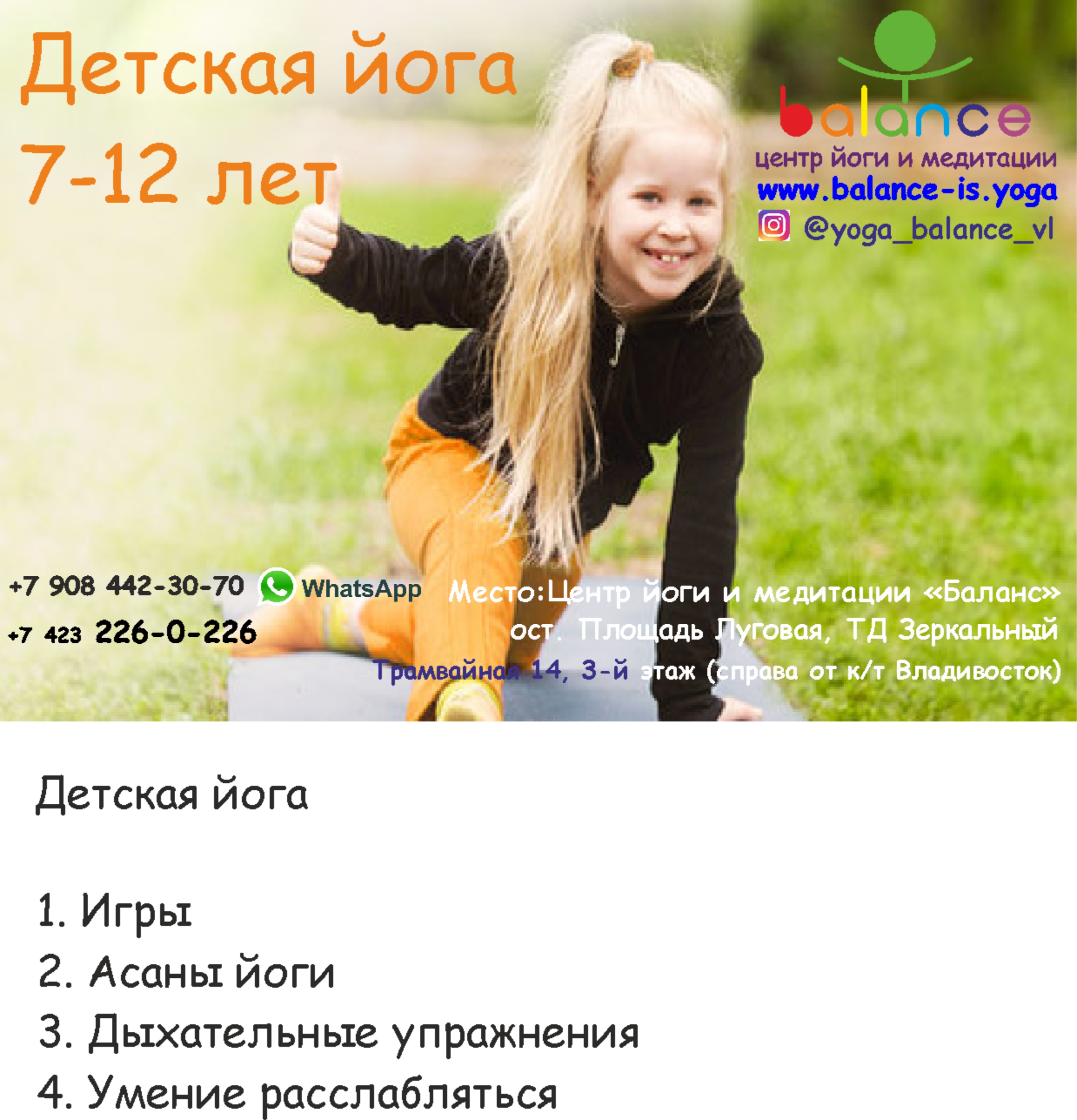 С 20 ноября в центре йоги и медитации «Баланс» начинаются занятия по детской йоге.